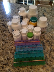 Nothing makes me feel more geriatric than these pills and the process of making sure that I take them with proper frequency and in the right combination.  The ugly truth is that I have been taking them for almost seven years now—since my heart attack in November, 2007.  So, since I was 59.  This is not a new development.